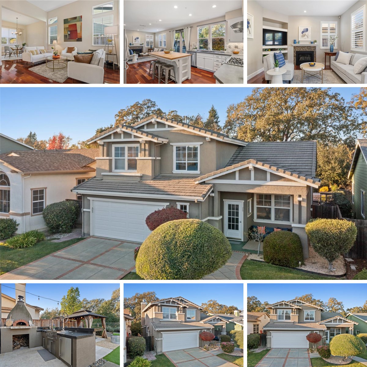 Fabulous property for entertaining. Vaulted ceilings, rich Cherrywood flooring. Every detail has been thoughtfully curated, from the professionally landscaped front and rear yards to the chef-inspired outdoor kitchen. Entertaining is effortless with premium amenities including an Italian imported pizza oven, Argentinian BBQ grill, stainless steel sink, beverage refrigerator, and bi-level granite countertops with bar seating. The large gazebo creates the perfect dining atmosphere, complemented by the inviting fire pit seating area, raised galvanized planters with integrated drip irrigation, and charming overhead Edison lighting. Inside, bask in natural sunlight throughout the day. The large primary bedroom and bathroom is a luxurious retreat featuring premium upgrades at every turn. The open-concept kitchen showcases a handsome butcher block island, modern stainless-steel appliances, elegant quartz countertops, stylish subway tile backsplash, and French doors that seamlessly connect to your outdoor paradise. On the main level you have the convenience of a half bath, laundry and interior access to a large 2 car garage with storage.